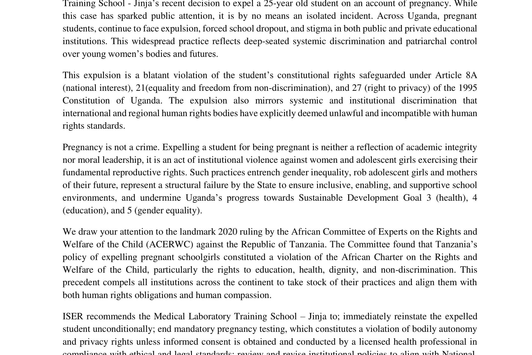 Pregnancy is not a crime. ISER Condemns the Expulsion of Pregnant Students from learning institutions